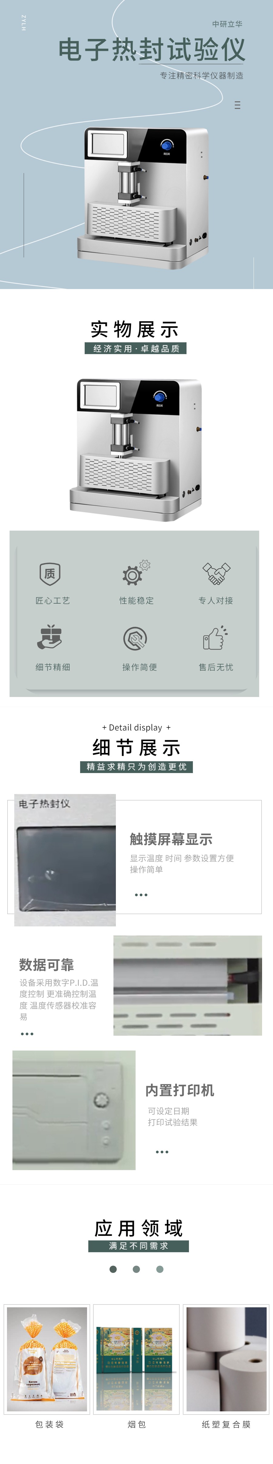 用途:測(cè)定塑料薄膜基材、軟包裝復(fù)合膜、涂布紙、鋁箔及其它熱封復(fù)合的適宜熱封溫度范圍,熱封裝速度,熱封壓力等。適用于各塑料薄膜、食品、藥品生產(chǎn)企業(yè)對(duì)產(chǎn)品質(zhì)量的控制和檢測(cè)機(jī)構(gòu)、學(xué)校