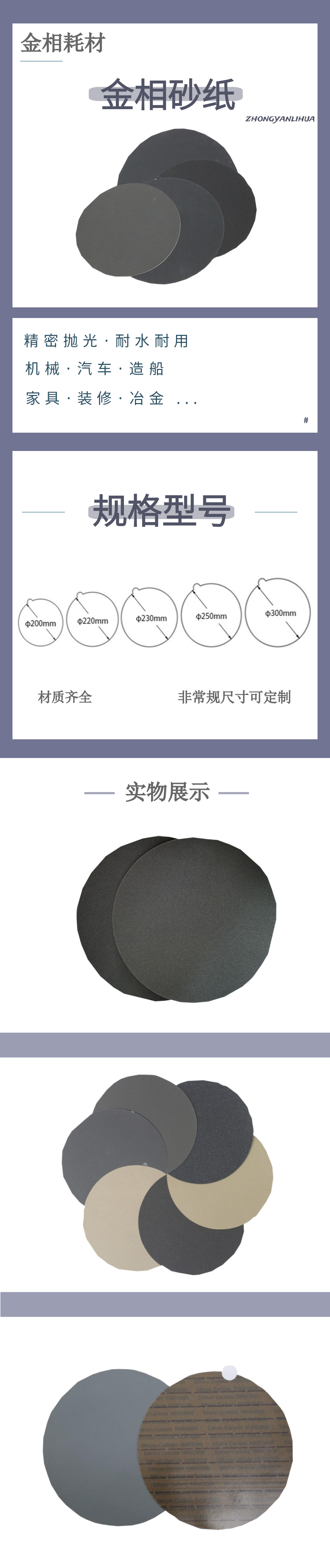 用途:專門為金相試樣制備研磨而設(shè)計(jì)的各種規(guī)格碳化硅耐水研磨砂紙,配合各種研磨機(jī)械用的圓形、條形的砂紙。黑色和有色金屬的金相試樣之粗磨、精磨、超精磨,即可干磨亦可濕磨,方便靈活。