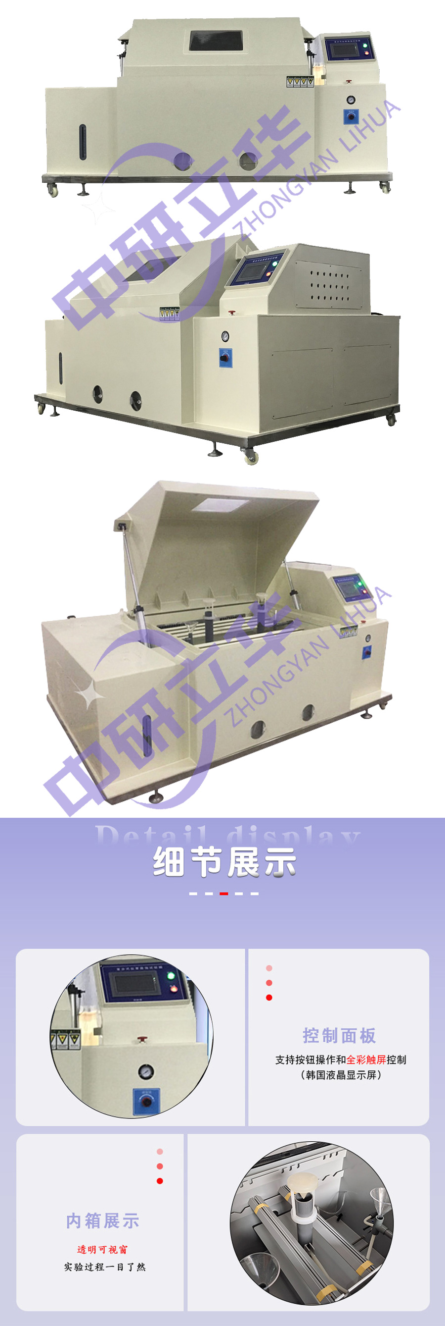 產(chǎn)品用途 溫濕度鹽霧復(fù)合試驗機是為加速腐蝕試驗中 接近實際的自然狀況,以自然環(huán)境中較常遇見之狀況加以模擬,以數(shù)倍於自然 環(huán)境之嚴(yán)苛條件加以組合測試,如鹽霧、干燥、濕潤、常溫、低溫等環(huán)境加以組合,可任意順序或單獨進行測試。主要測試品針對在激烈環(huán)境變化下使用的產(chǎn)品, 如汽機車零配件,航空器材、攝影器材、建筑材料、電著涂膜涂料及電子電機系統(tǒng)等金屬電化學(xué)腐蝕抗抵性皆適用