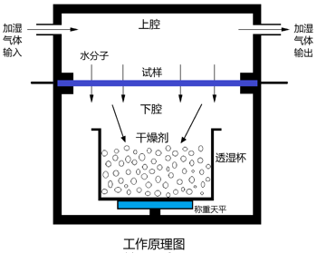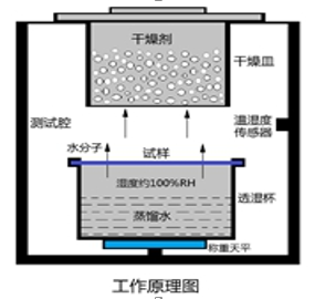 ■ 濕度差:上腔的水分子透過試樣 擴散到下腔